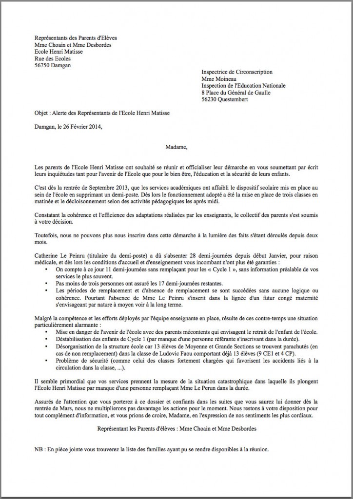 Lettre à l’Académie pour les problèmes récurrents de remplacements